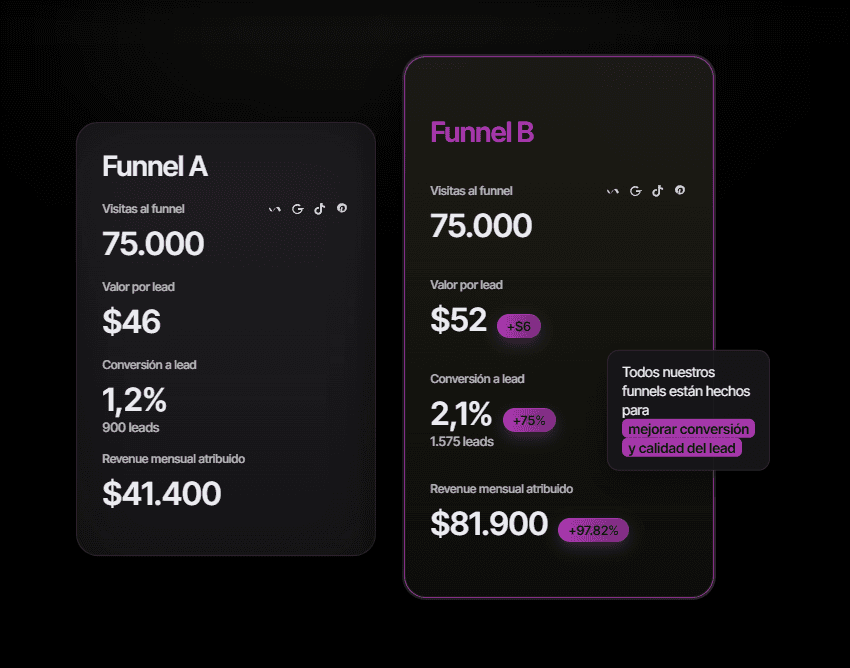Subir la conversión sin filtrar solo te llena de formularios. Testeamos landings para convertir y calificar: menos curiosos, más oportunidades reales.